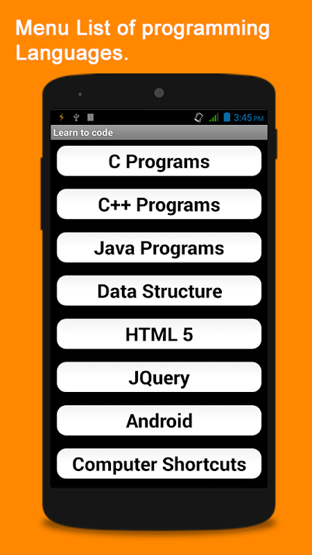 This Application is for anyone interested in learning how to write codes. It is a handy application that can help you master your coding practice. It comes with C , C++, Java, Data Structure, HTML 5, Jquery, Android programs and tutorials. It also has computer shortcuts tutorial for mastering computer keyboards.