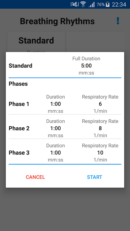 This App offers the possibility to present the user with self-defined breathing rhythms. This is useful for HRV-measurements, where one or more breathing rhythms should be analyzed.