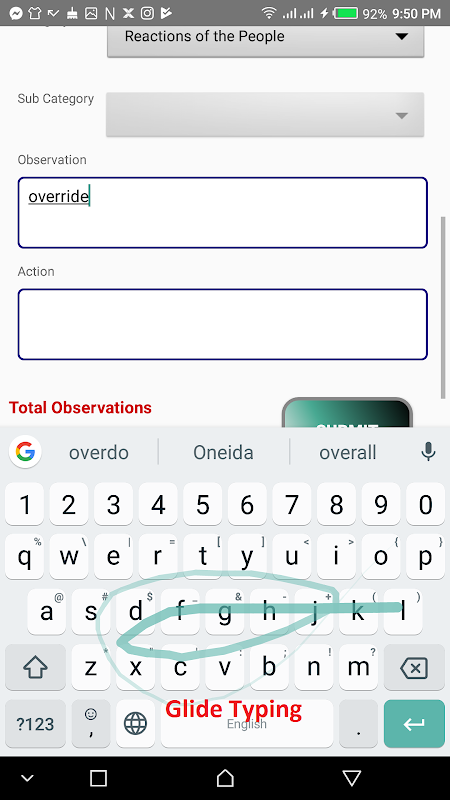 * Ability to use keyboards functions eg. Google voice typing, glide typing, finger writing ...etc.