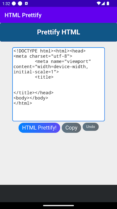 Introducing the HTML Prettify app, the ultimate tool for beautifying your HTML code and enhancing your web development workflow! Whether you're a seasoned web developer or just starting out, our app is designed to simplify the process of formatting and indenting your HTML code, making it easier to read and maintain.