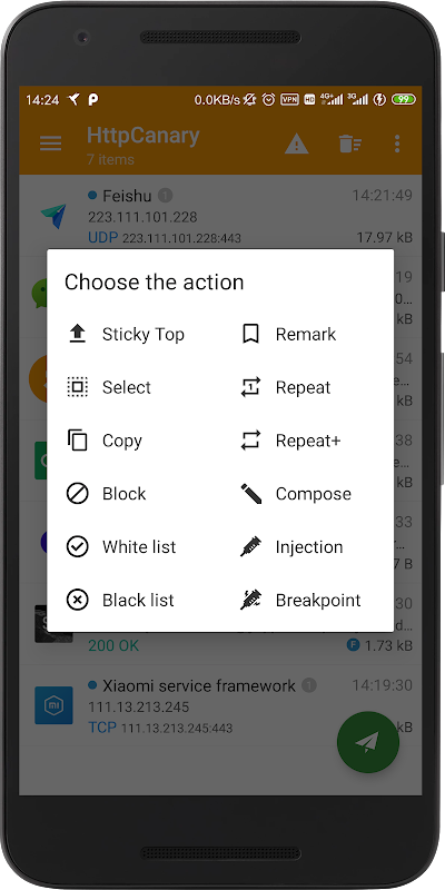 HttpCanary is a powerful HTTP/HTTPS/HTTP2/WebSocket/TCP/UDP packets capture and analyzer app designed for Android platform.