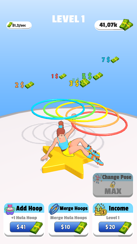 مزید رقم حاصل کرنے کے لیے آپ تمام Hula Hoops کی گھومنے کی رفتار بڑھانے کے لیے اسکرین پر ٹیپ کر سکتے ہیں۔