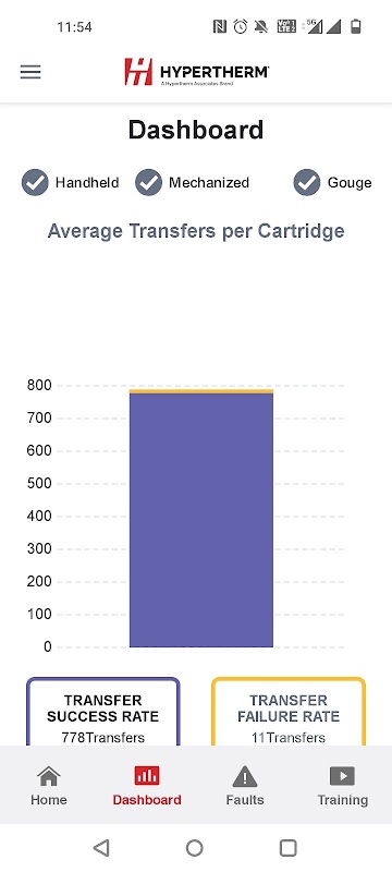 ہائپر تھرم کارٹریج ریڈر اور ایپ برائے پاور میکس SYNC Hyper ہائپر تھرم کارتوس میں محفوظ ڈیٹا کا جائزہ لینے کے لیے ایک آسان عمل فراہم کرتا ہے۔ کارتوس ریڈر کارٹریج میں فٹ بیٹھتا ہے اور آپ کے موبائل ڈیوائس کے قریب فیلڈ کمیونیکیشن (این ایف سی) اینٹینا کے ساتھ کام کرتا ہے تاکہ کارٹریج میں محفوظ ڈیٹا کو ایپ میں منتقل کیا جا سکے۔ کارتوس اسکین کریں ، لیبل شامل کریں ، اور ایپ میں ڈیٹا کا تجزیہ کریں۔ ڈیٹا کو کارٹریج ایکسل ڈیٹا اینالیسس ٹول ، یا کسٹمر کے بنائے ہوئے ٹول میں درآمد کیا جاسکتا ہے ، تاکہ اسٹارٹ ، ٹرانسفر ، آرک آن ٹائم اور دیگر قیمتی کارٹریج ڈیٹا کی کارکردگی کا تجزیہ کیا جاسکے۔ اس ڈیٹا کا تجزیہ گاہکوں کو کارٹریج کے استعمال کو بہتر طور پر سمجھنے اور آپریٹر کی تربیت کے مواقع کی شناخت میں مدد کرتا ہے۔