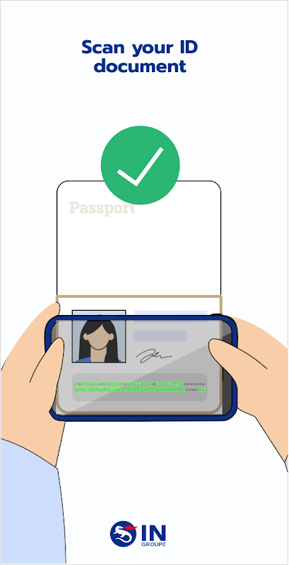 دوسرے مرحلے میں، آپ اپنے موبائل ڈیوائس پر کیمرے کا استعمال کرتے ہوئے اپنے پاسپورٹ (یا اسی طرح کی شناختی دستاویز، جیسے کہ ڈرائیور کا لائسنس یا رہائشی کارڈ) کو ڈیجیٹل طور پر اسکین کریں گے۔ ایک بار میچ کامیابی سے قائم ہو جانے کے بعد، ایپ یا تو خود بخود بند ہو جائے گی یا آپ کو اسے بند کرنے کا اشارہ دے گی۔
