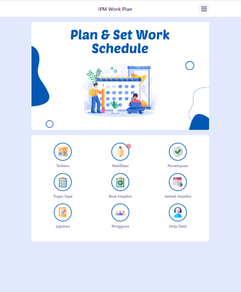 IFM Workplan ایک ایپلی کیشن ہے جو PT Garuda Daya Pratama Sejahtera انتظامی سہولیات کے ہر پہلو میں ٹیکنیشنز اور ہاؤس کیپنگ کے ذریعے شیڈولنگ، چیکنگ اور ماہانہ رپورٹس کے لیے استعمال ہوتی ہے۔