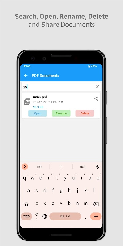 -- کھولیں، نام تبدیل کریں، حذف کریں، دستاویز کا اشتراک کریں کی خصوصیت ایپ کو استعمال میں زیادہ آسان بناتی ہے۔