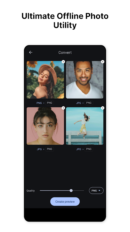 اپنی تصاویر کو فوری اور آف لائن سکیڑیں، سائز تبدیل کریں، تراشیں اور کنورٹ کریں!