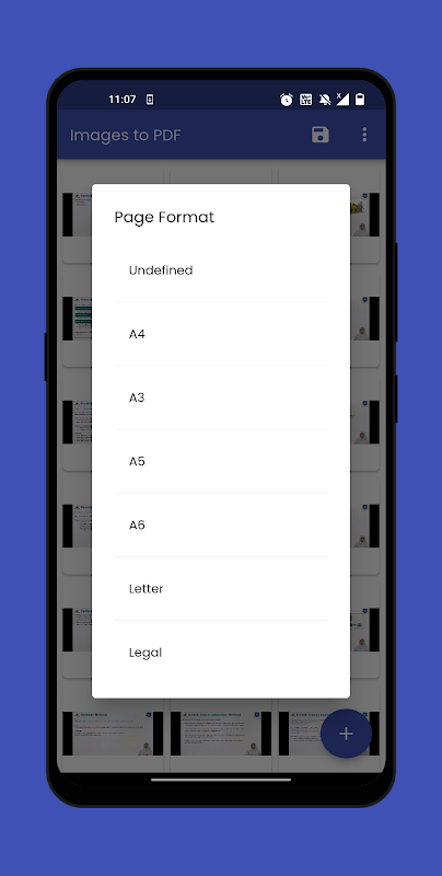 - اگر آپ کو یقین نہیں ہے کہ کون سا فارمیٹ استعمال کرنا ہے، تو "غیر متعینہ" کو منتخب کریں تاکہ ایپ آپ کے لیے صفحہ کا سائز خود بخود ایڈجسٹ کر سکے۔