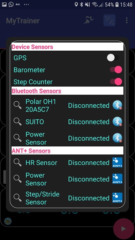 HR, Speed/Cadence data from ANT+/BLE Sensor and GPS for indoor/outdoor Rides