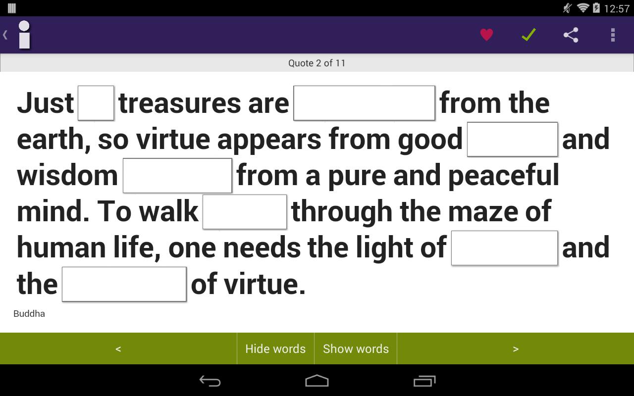 A fun and easy way to memorize quotations. Features include: