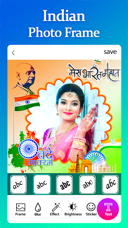 - ہندوستانی پرچم تصویری ایڈیٹر میں دیئے گئے پرچم کی تصویری فریموں اور ان کے اثرات کا انتخاب کریں۔