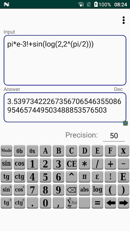 یہ بہترین ہے جہاں اعلی درستگی کے نتیجے کی ضرورت ہوتی ہے۔ صرف کچھ مثبت تعداد پر صحت سے متعلق مرتب کریں اور کیلکولیٹر ہندسوں کی مخصوص تعداد کا حساب لگائے گا۔