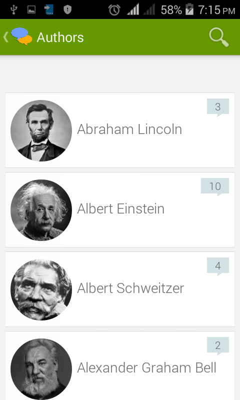 This is a free android app that contains tons of inspiring quotes from various authors. Features include: