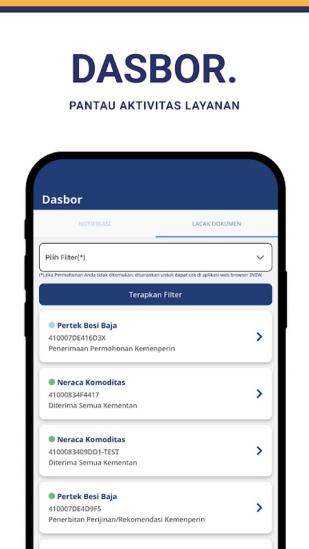 - ٹریکنگ NIB (کاروباری رجسٹریشن نمبر)