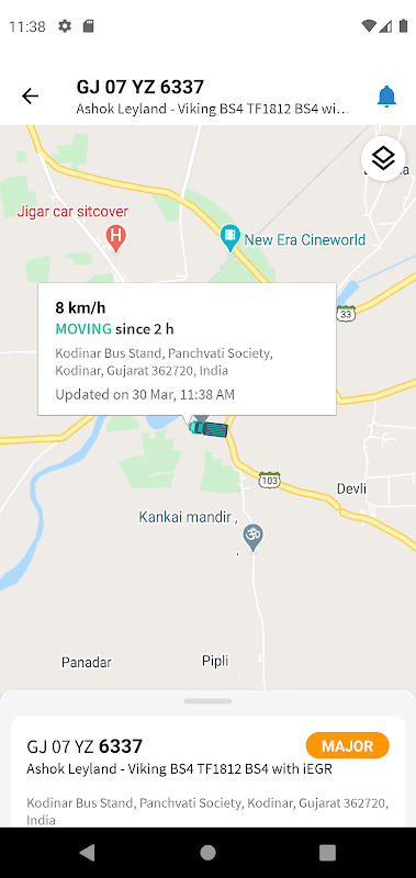 - نقشہ کا منظر زندہ مقام کے ساتھ ساتھ گاڑی کی رفتار اور پوزیشننگ کی تفصیلات کے ساتھ