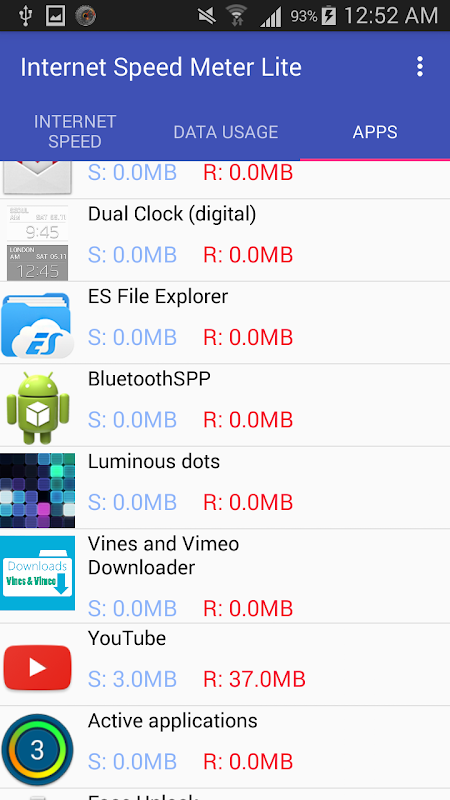 Internet Speed Meter displays your internet speed in status bar and shows the amount of data used in notification pane.