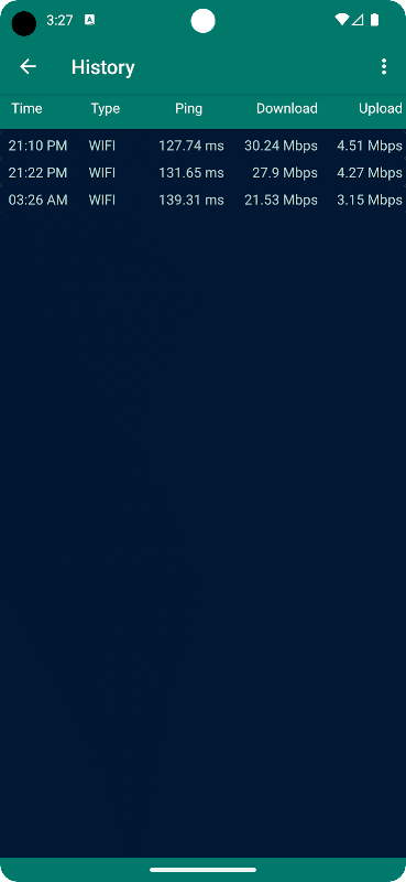 📶 Wi-Fi اور سیلولر نیٹ ورک سپورٹ: Wi-Fi اور سیلولر نیٹ ورکس دونوں پر اپنے انٹرنیٹ کی رفتار کی جانچ کریں۔ مختلف نیٹ ورکس میں کارکردگی کا موازنہ کریں اور جب بھی ضروری ہو دستیاب تیز ترین آپشن پر سوئچ کریں۔