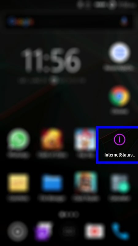 before running any App which require internet just click on "Internet Status Message" App icon you will get status of your internet while its working ok or not with the current timestamp of your mobile in the Toast Alert Message form.