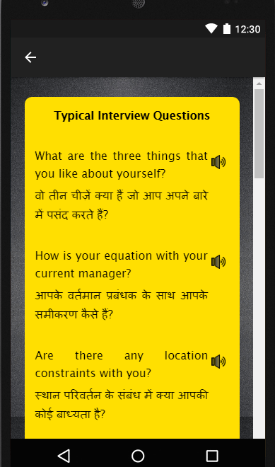 * The app also gives knowledge about tricky questions you can face during an interview in English.