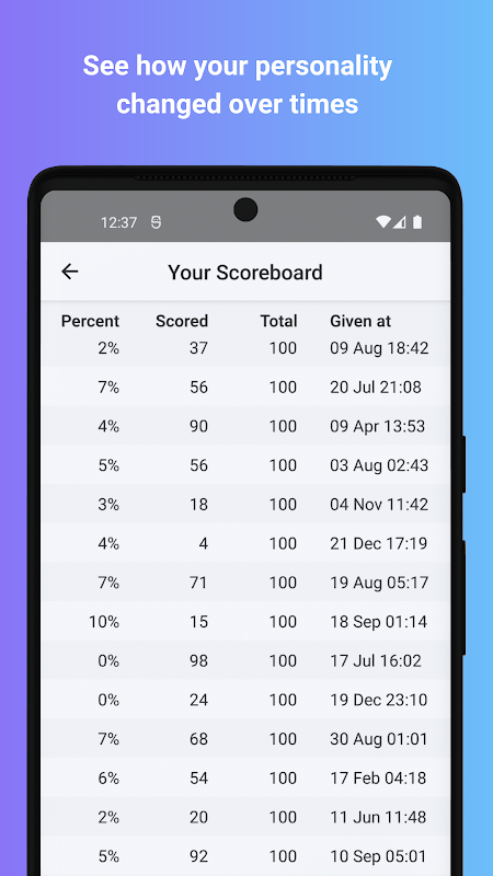 ⭐ اسکور بورڈ جو تاریخ کے ساتھ آپ کے اسکور کو ٹریک کرتا ہے۔