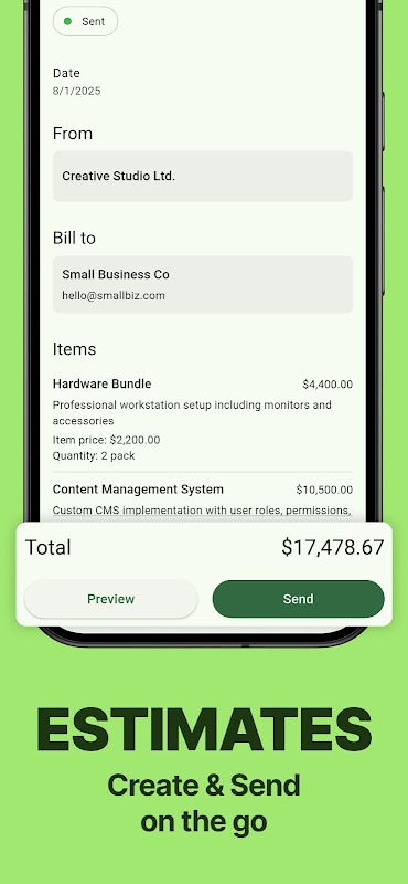 انوائس، تخمینہ، اور اخراجات بنائیں — تیز اور پیشہ ورانہ