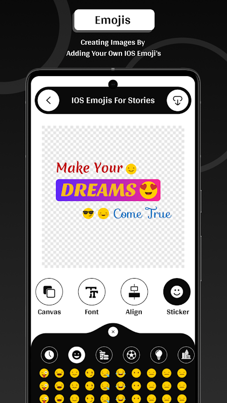 iOS Emojis For Stories ایپلی کیشن اپنے طریقے سے تصویری کہانیاں بنانے میں مدد کرتی ہے۔