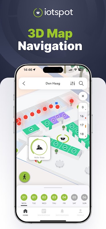 - Easy toggle between desk and parking reservations, including hints.