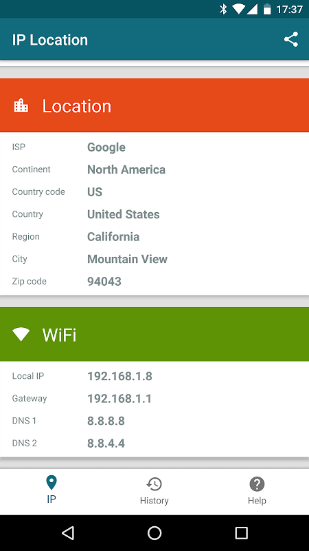 Simple and easy-to-use geolocation app that displays the location of an IP address on a map, together with additional useful data such as: