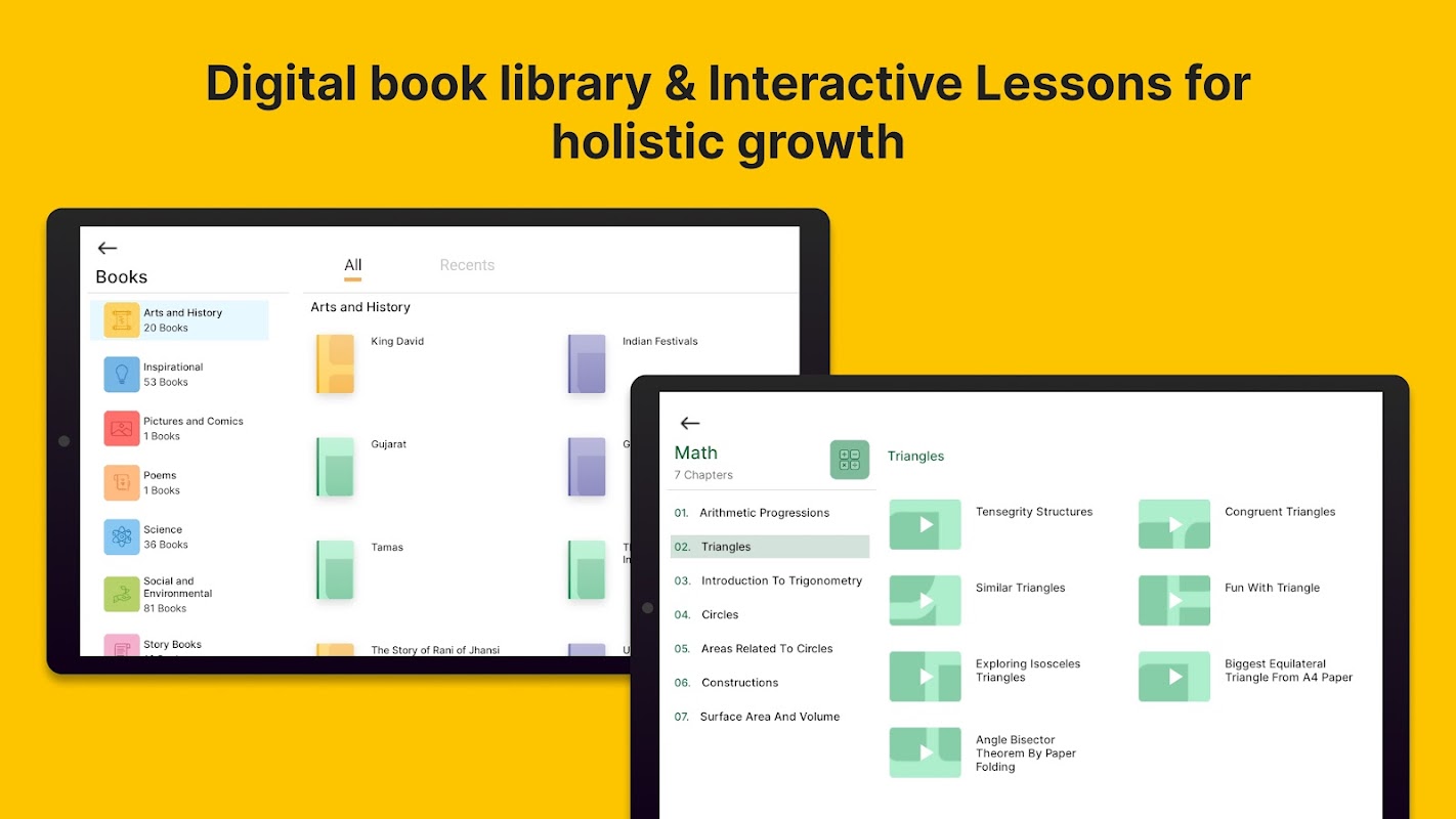 انٹرایکٹو اسباق بشمول ریاضی اور سائنس میں DIY پروجیکٹ ویڈیوز طلباء کو اپنے ارد گرد آسانی سے دستیاب مواد کا استعمال کرتے ہوئے ماڈلز اور پروجیکٹس بنانے کے قابل بناتے ہیں۔