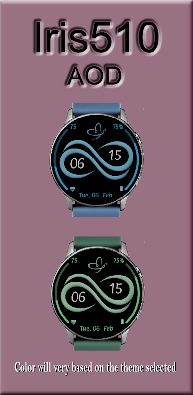 Iris510 ایک رنگین ڈیجیٹل گھڑی کا چہرہ ہے جس میں اس کی شکل بدلنے کے بہت سے اختیارات ہیں۔ ضروری معلومات کی نمائش کے دوران یہ آسان اور فعال ہے۔ گھڑی کا چہرہ دن، تاریخ اور مہینہ دکھاتا ہے۔ وقت 12 گھنٹے یا 24 گھنٹے کے فارمیٹ میں ظاہر ہوتا ہے اور آپ کے اسمارٹ فون ٹائم فارمیٹ سیٹنگ کے ذریعے خود بخود سیٹ ہوجاتا ہے۔ بیٹری کا فیصد اور دل کی شرح بھی ظاہر ہوتی ہے۔ 8 رنگوں کے امتزاج بھی ہیں جو آپ کو گھڑی کی شکل بدلنے کی اجازت دیتے ہیں۔ AOD کی شکل آپ کے منتخب کردہ تھیم کے رنگوں کی بنیاد پر بدل جائے گی اور بیٹری کی زندگی میں مدد کے لیے کم سے کم معلومات دکھاتی ہے۔ زیادہ تر زبانیں تعاون یافتہ ہیں۔ تفصیلات کے لیے فیچر گائیڈ دیکھیں۔