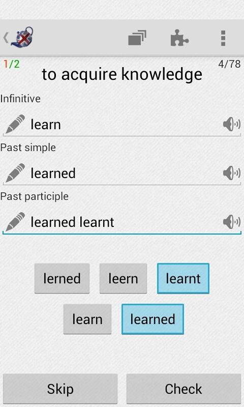 Учим неправильные глаголы английского языка. Слова разбиты на небольшие группы по схожим признакам, что позволяет быстро и без труда их запомнить. Для проверки своих знаний вы можете ввести ответы с клавиатуры или выбрать из предложенных вариантов.