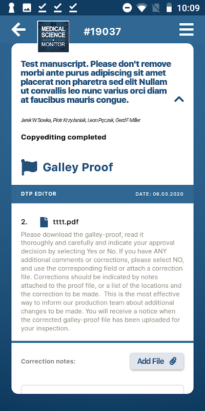 With the application, you can monitor the progress of the editing process and interact with editors during the manuscript processing when required.