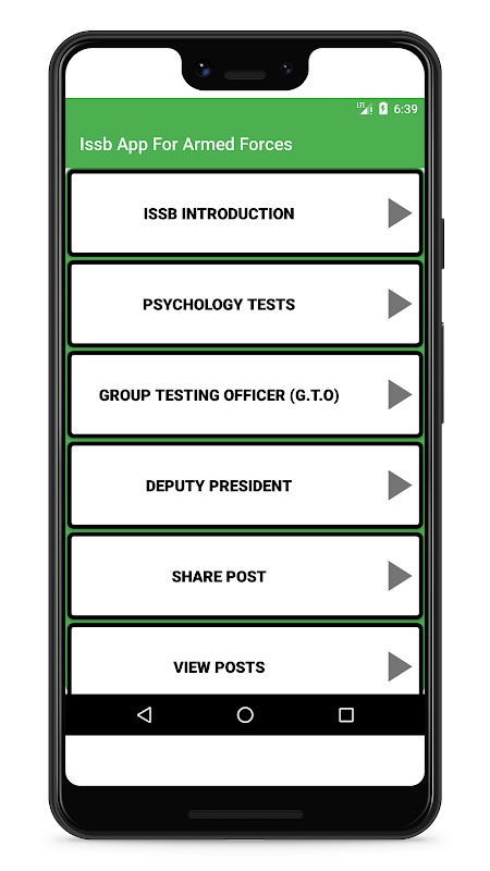 اس ایپ میں ISSB میں کئے جانے والے پریکٹس کے ساتھ حل شدہ ٹیسٹ شامل ہیں۔ اس میں متن کی شکل میں مدد کرنے والی پوسٹ کو شیئر کرنے اور امیدواروں کی دوسری پوسٹ دیکھنے کی فعالیت بھی شامل ہے جو امیدواروں کی مدد کرے گی۔