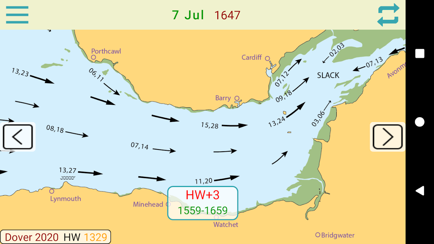 ڈوور میں اعلی پانی کے وقت کے حوالے سے ، iS اسٹریمز موجودہ فی الوقت برسٹل چینل سمندری اسٹریم اٹلس کو دکھاتا ہے ... ایک سمارٹ ایپ ، مکمل طور پر فعال آف لائن۔ لہر سیٹ اور انٹرپولیٹڈ ریٹ کی پیمائش کرنے کے اوزار کے ساتھ۔