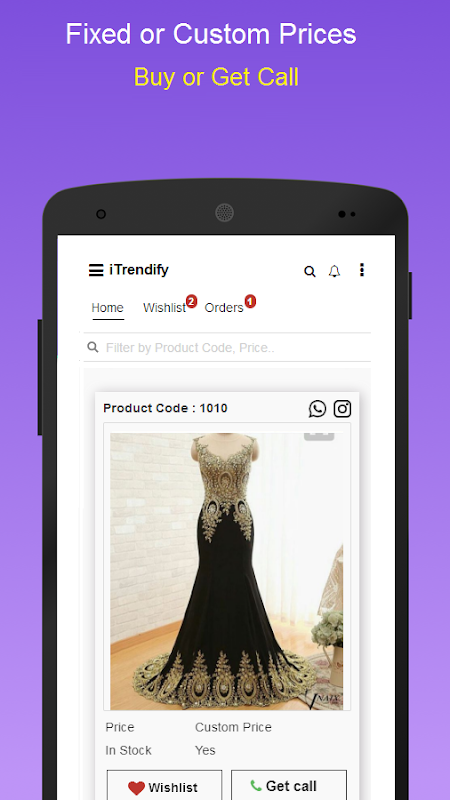 can find all our products being posted to instagram into iTrendify app instantly , view prices , shortlist and order easily.