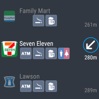 Select type of destination from the menu (convenience store, cafe, family restaurant, station, fast food) , otherwise enter the destination by voice input on your watch.