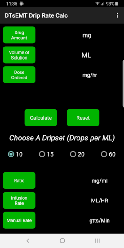 This is an IV drip rate calculator for paramedics and nurses. Most of the features of this app are available on modern pumps - but modern pumps aren't always available.