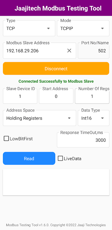 Jaajitech Modbus Test App 1.6.0