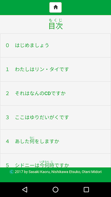اس ایپ میں نصابی کتاب "文法まとめリスニング初級1―日本語初級1 大地準拠―" کے لیے سننے کی فہمی مشقیں شامل ہیں۔