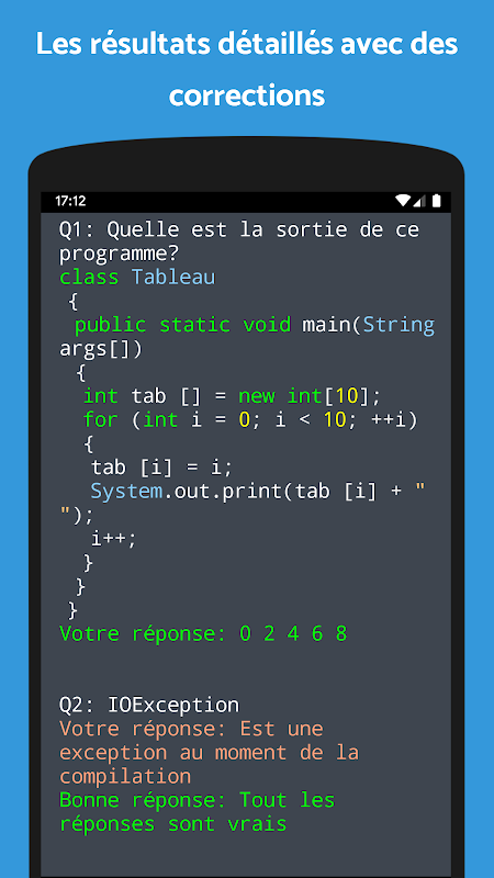 Il y a 2000+ questions avec explication, de différents sujets : Java, Python, C, C#, C++, Javascript, HTML, PHP, Algorithmes … Elles vous aideront à maîtriser l'entretien et améliorer vos connaissances.
