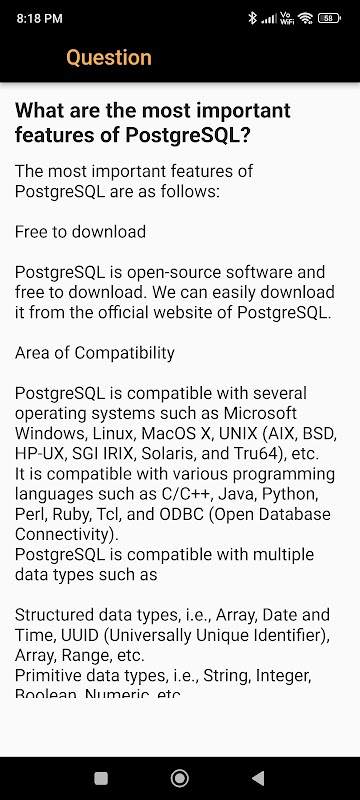 جاوا انٹرویو کے سوالات: جاوا میں خاص طور پر دلچسپی رکھنے والوں کے لیے، ہماری ایپ میں جاوا کے تصورات پر مرکوز 100+ سوالات کے ساتھ ایک وقف شدہ سیکشن شامل ہے۔ اپنے علم کو گہرا کریں اور جاوا انٹرویو کے منظرناموں میں اپنے اعتماد کو فروغ دیں۔