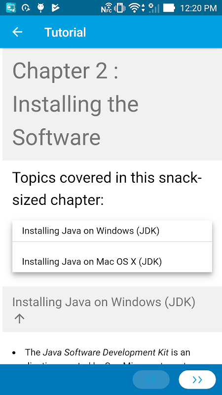 You have limited access to the content provided. For full access to the content, please login and purchase this application. This app provides a quick summary of essential concepts in Java Programming by following snack sized chapters: