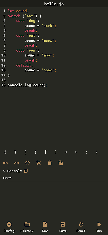 کم سے کم JavaScript کوڈ ایڈیٹر جو آپ کو اپنے موبائل ڈیوائس سے چلتے پھرتے کنسول اسکرپٹس چلانے کی اجازت دیتا ہے۔