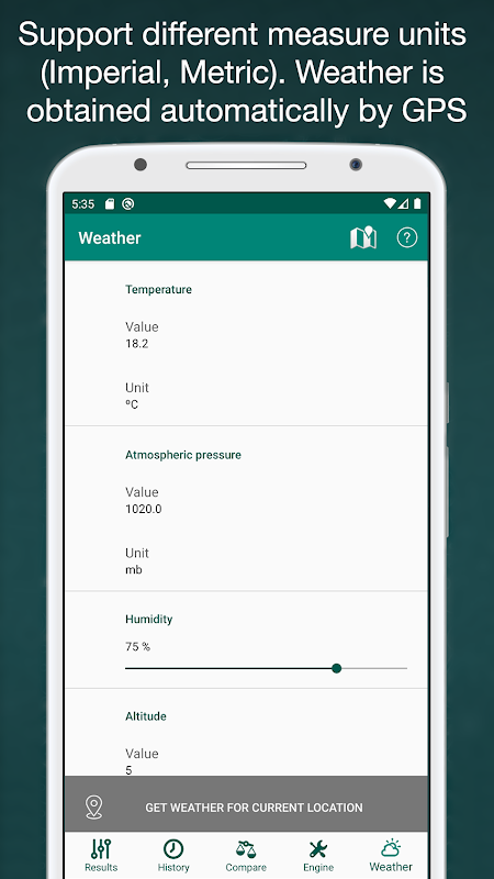 یہ ایپ قریب ترین ویدر سٹیشن سوچ انٹرنیٹ سے درجہ حرارت، دباؤ اور نمی حاصل کرنے کے لیے خود بخود پوزیشن اور اونچائی حاصل کر سکتی ہے۔ اندرونی بیرومیٹر بہتر درستگی کے لیے معاون آلات پر استعمال کیا جاتا ہے۔ ایپلی کیشن جی پی ایس، وائی فائی اور انٹرنیٹ کے بغیر چل سکتی ہے، اس صورت میں صارف کو موسم کا ڈیٹا دستی طور پر داخل کرنا پڑتا ہے۔