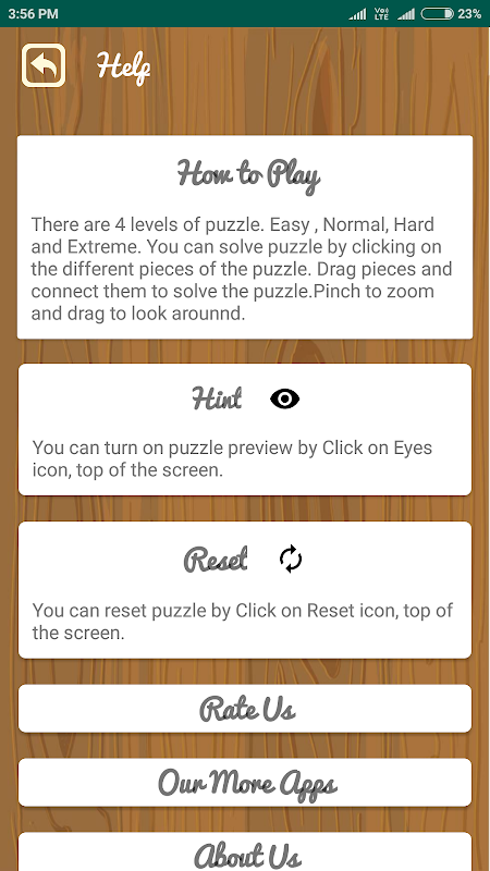 Legendary Jigsaw Game with awesome pictures in a wide variety of categories. Create a puzzles from your own photos from Gallery or take new photos from camera. Premium free app is the splendid option for jigsaw puzzle lovers.