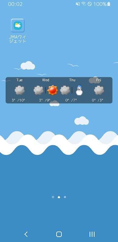 本アプリは、信頼性の高い気象庁の週間天気情報を取得しウィジェット上に表示します。