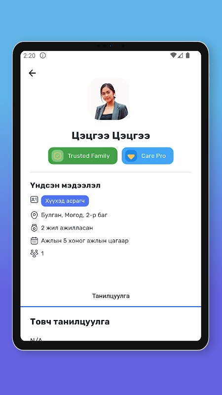 ہماری ایپ قابل اعتماد نینی، ہاؤس کیپرز، ہاؤس کیپرز اور بزرگوں کی دیکھ بھال کو تلاش کرنا آسان بناتی ہے۔ اس میں درج ذیل خصوصیات ہیں۔