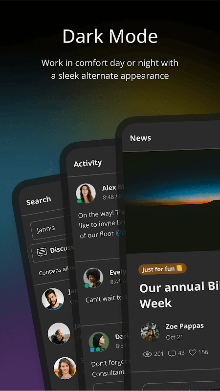 ڈارک موڈ - ایک چیکنا متبادل ظاہری شکل کے ساتھ دن یا رات آرام سے کام کریں۔
