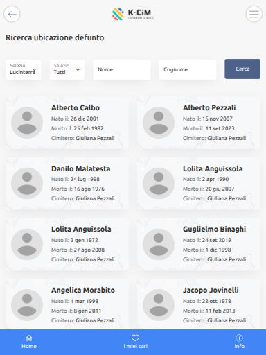 سیمنٹک سرچ انجن اور ایڈوانس فلٹرز کے ذریعے، آپ نام، کنیت اور پیدائش یا موت کا سال درج کرکے آسانی سے میت کا پروفائل تلاش کر سکتے ہیں۔ ہر پروفائل ایک وقف کارڈ کی میزبانی کرتا ہے جہاں خاندان کے افراد اور دوست پیغامات، خیالات اور یادیں چھوڑ سکتے ہیں، میموری کو ایک "ڈیجیٹل کتاب" میں تبدیل کر سکتے ہیں جس سے ہمیشہ مشورہ کیا جا سکتا ہے۔