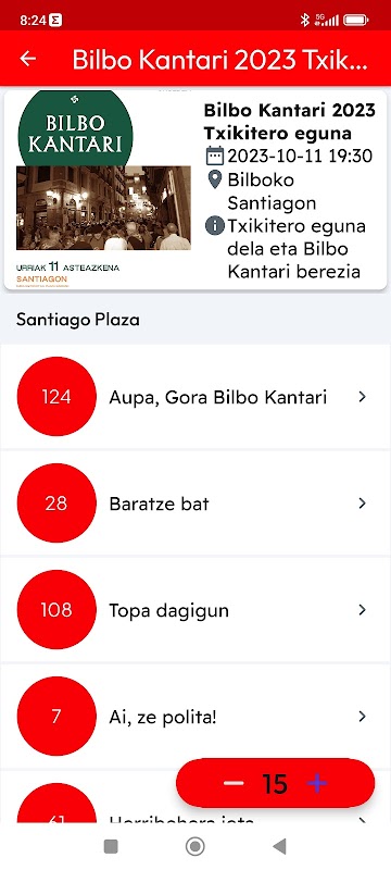 کنٹاری ایپ ڈیجیٹل کتابوں کو روایتی باسکی گانوں اور ایونٹس کے بولوں کے ساتھ لاتی ہے جس کا مقصد انہیں بلبو کنٹیری، پلینٹزیا کانٹاگون، ایتھلیٹک بلباؤ گانوں، زراؤٹز کانٹوز یا دیگر کنٹالڈیز میں گانا ہے۔ اس میں باسکی کرسمس گانوں کی ایک کتاب بھی ہے اور اس میں کراوکی ویڈیوز بھی شامل ہیں۔ اب اپ ڈیٹ کر دیا گیا ہے۔